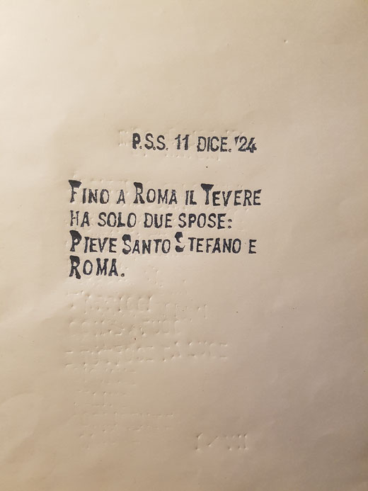 Paolo, pendant mon séjour, m'a raconté qu'à l'âge de seize ans, il a été foudroyé par Jim Morrison et la musique culte de Doors et grâce à eux, il commença à lire des écrivains comme Blake, Rimbaud et Baudelaire. Quatre ans après, tout juste âgé de vingt ans, pendant ses séjours tranquilles à Bulciano, à quelques kilomètres de Pieve, dans la Valtiberina ( Michel-Ange est né dans la Valtiberina), le garçon créatif décide de suivre le chemin de l'Art dans ses formes multiples: peinture, écriture, poésie. Giovanni Papini fut fondamental, lui qui justement se réfugeait aussi à Bulciano pour écrire ses chefs d'oeuvre: Papini fut le premier à traduire en italien William Blake.